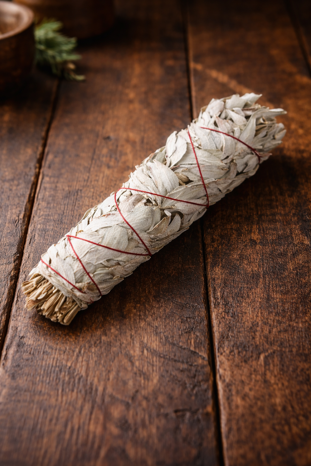 Ročno pripravljen žajbljev zvitek za simbolno očiščenje prostora in ustvarjanje svetega, umirjenega okolja.